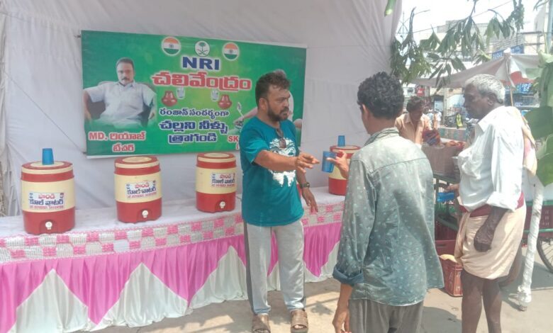 నెల్లూరు జిల్లా ఆత్మకూరు పట్టణంలోని బిఎస్సార్ సెంటర్ వద్ద కూలింగ్ వాటర్ తో మంచినీటి చలివేంద్రం ఏర్పాటుచేసిన పట్టణానికి చెందిన ఎన్ఆర్ఐ మీరా గా పిలవబడే మీరా మొహిద్దీన్ బి ఎస్ ఆర్ సెంటర్ లో తన షాపు పక్కన పాదచారులకు ఉపయోగకరంగా ఉండే విధంగా చల్లని మంచినీటి ట్యాంకులను ఏర్పాటు చేసి అటుగా వెళ్తున్న వారికి ఉచితంగా మంచినీటి మీరా మొహిద్దిన్ అందజేస్తున్నారు. గతంలో కూడా సేవా కార్యక్రమం చేయడంలో ఆసక్తి కనబరిచే వ్యక్తి మీరా మొహిద్దిన్.. ఎండలు భారీగా ఉన్నా మున్సిపాలిటీ అధికారులు ఎవరూ పట్టించుకోక పోయినా తన ప్రాంతంలో ఉచిత మంచినీటి చలివేంద్రం ఏర్పాటు చేయడం అభినందనీయం….